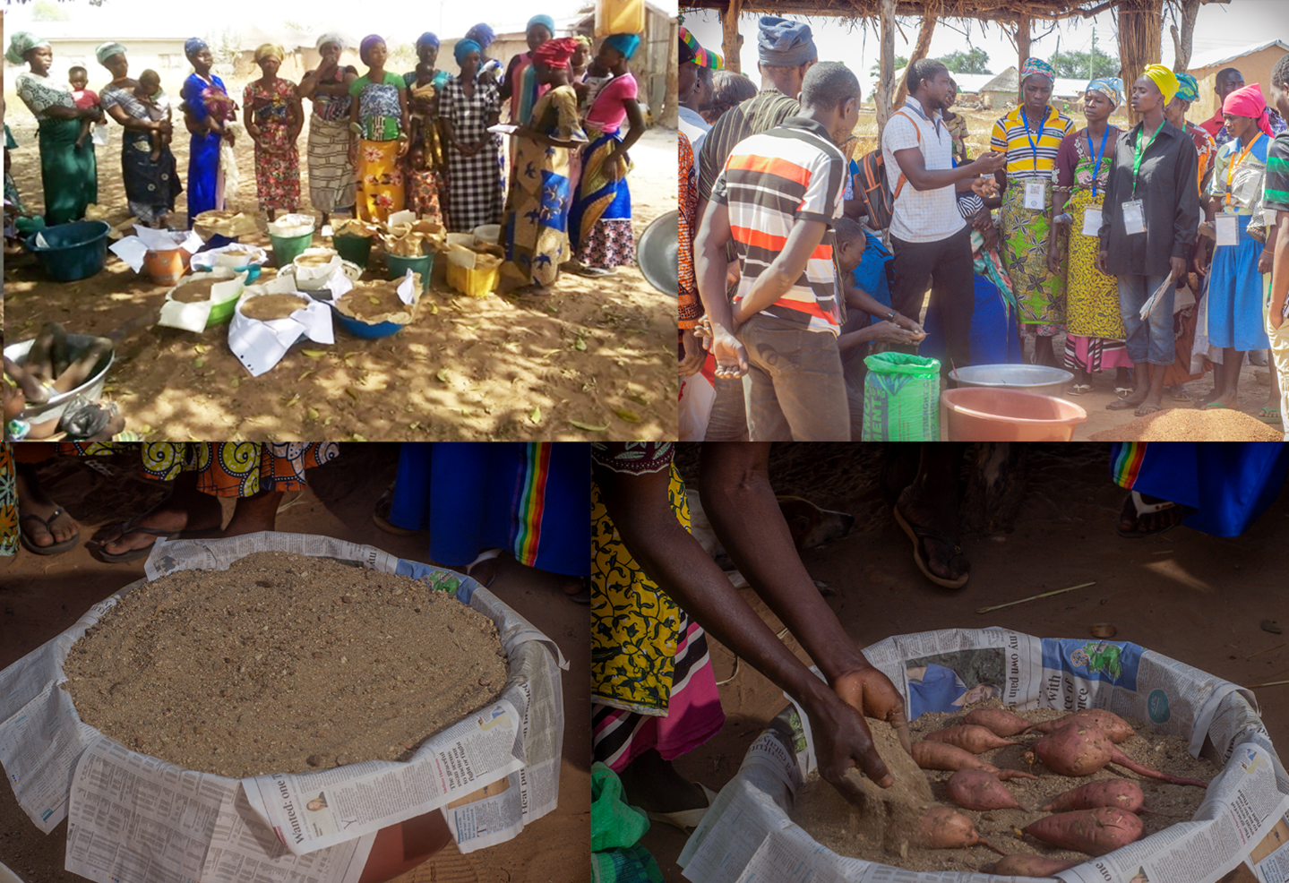 To address these issues, the Social Diffusion of Sweetpotato Seed Storage Techniques (SDSSST) project, in collaboration with the Generating Revenues and Opportunities for Women to Improve Nutrition in Ghana (GROWING) project—co-implemented by the International Potato Center (CIP), Ghana, and CARE International—has introduced farmers to the Triple S technology. The initiative focuses on building the capacity of farmers to conserve planting materials by adopting the following steps: