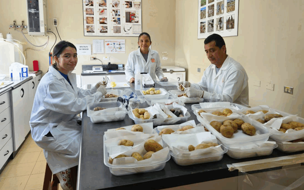 Under the supervision of Dr. Gabriela Burgos, senior scientist at CIP, Mariana was introduced to a wide range of activities at the Quality and Nutrition Laboratory and within the Crop Improvement Program. Her training plan included hands-on work in sample preparation and analysis of potato, yacón, and mashua, as well as direct engagement with community kitchens incorporating iron-biofortified potatoes in meal preparation. She also had the opportunity to interact with one of Dr. Burgos’s doctoral students and observe an intervention in rats designed to evaluate the effects of consuming purple-fleshed potatoes as a potential anti-obesity component. These experiences expanded her understanding of how advanced research connects to nutrition and public health.