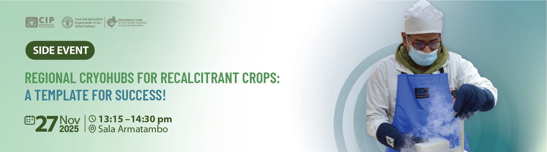 We invite you to join us for this important discussion and explore how regional cryohubs can enhance global food security. The session will conclude with a networking reception, offering space for exchanges among researchers, policymakers, and partners committed to protecting crop diversity for a more resilient world.