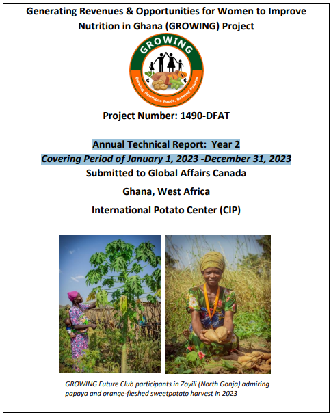 Citation: International Potato Center. Generating Revenues & Opportunities for Women to Improve Nutrition in Ghana (GROWING) Project. Annual Technical Report 2023. Lima, Peru: International Potato Center. 142p