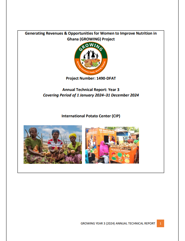 Citation: International Potato Center. Generating Revenues & Opportunities for Women to Improve Nutrition in Ghana (GROWING) Project. Annual Technical Report 2024. Lima, Peru: International Potato Center. 86p